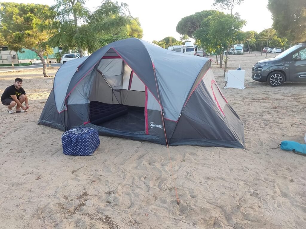 • Tras probarla y comparar con alternativas, mi veredicto es claro: si quieres mucho espacio, ventilación excelente y un precio ajustado, la Outsunny túnel impermeable cumple. ¿Qué pide a cambio? Dos o tres mejoras que son baratas y fáciles: piquetas serias, vientos extra y footprint. Con eso, se transforma en un refugio de verano muy capaz para familias o grupos de 3–4 que vayan a playa, costa o campings secos.